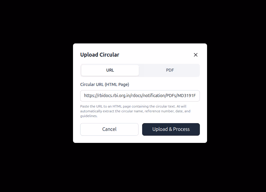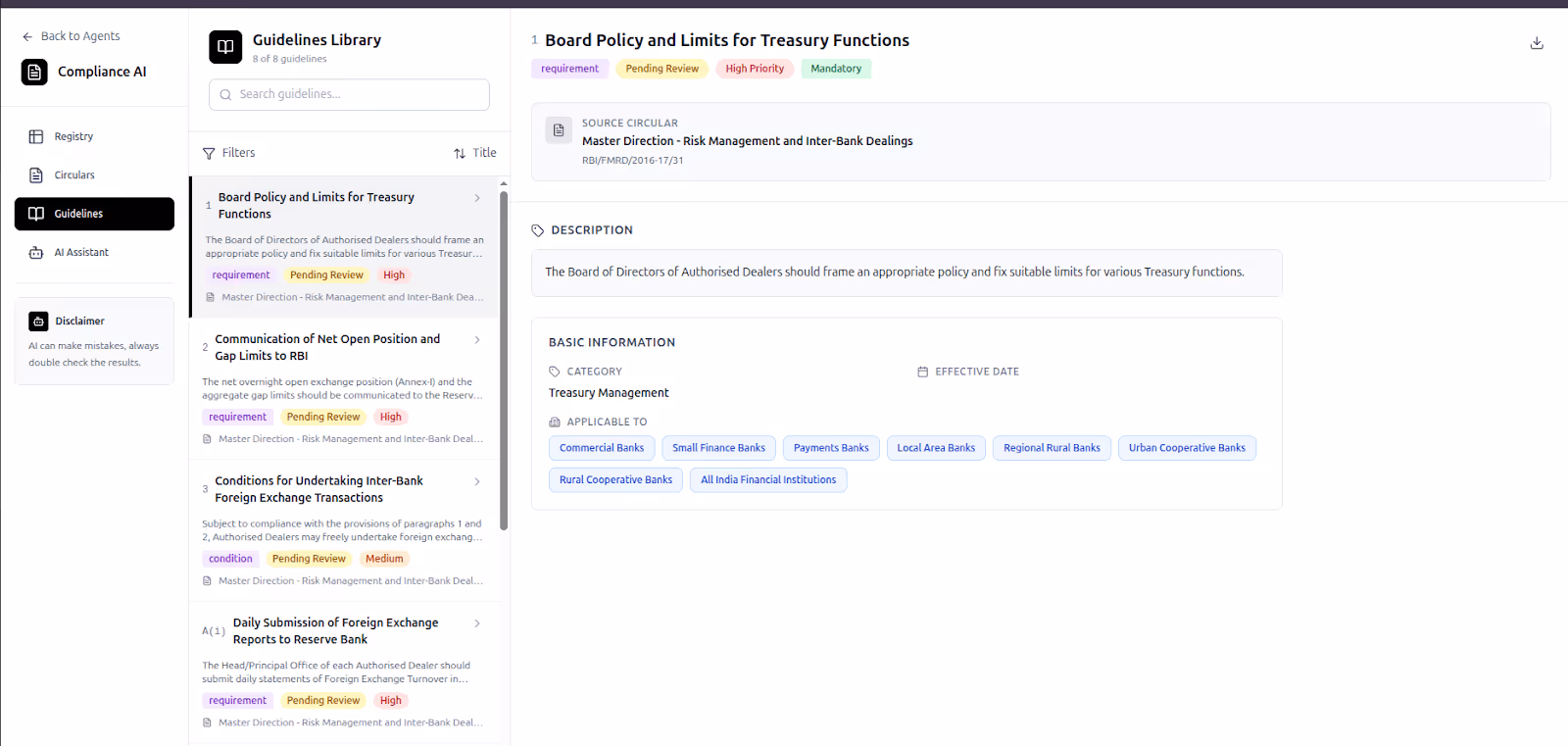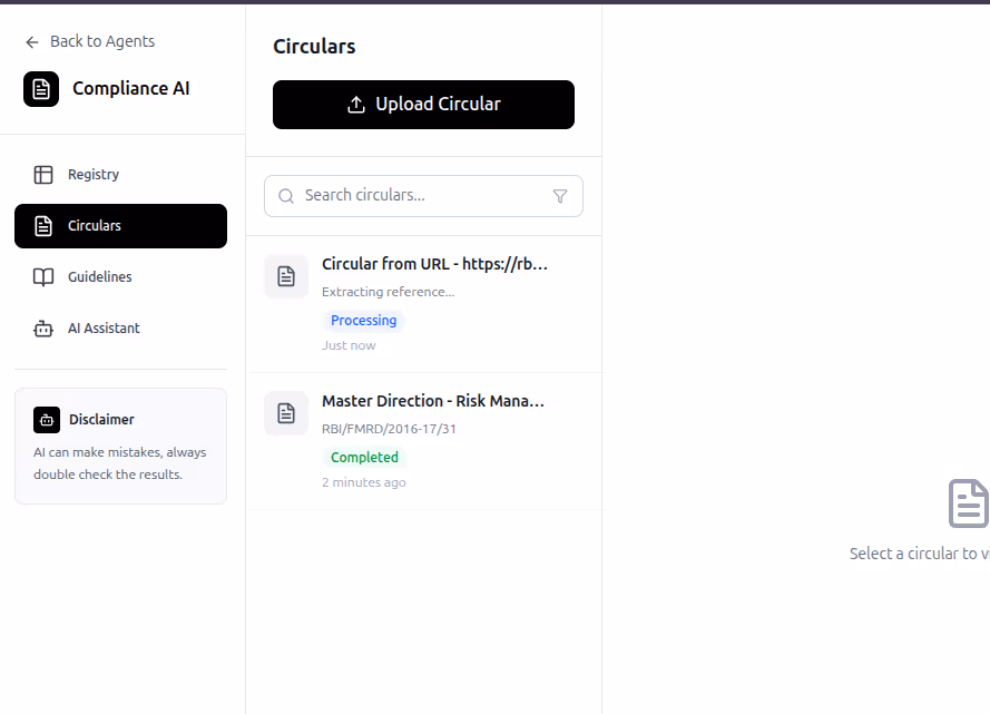 Click on Guidelines to view the structured outputs generated from each circular.