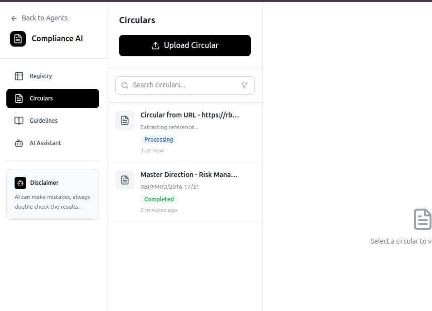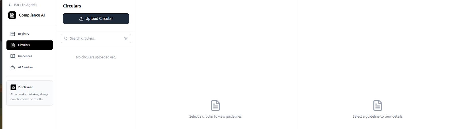 All uploaded documents are listed in the Circulars view, providing visibility into: