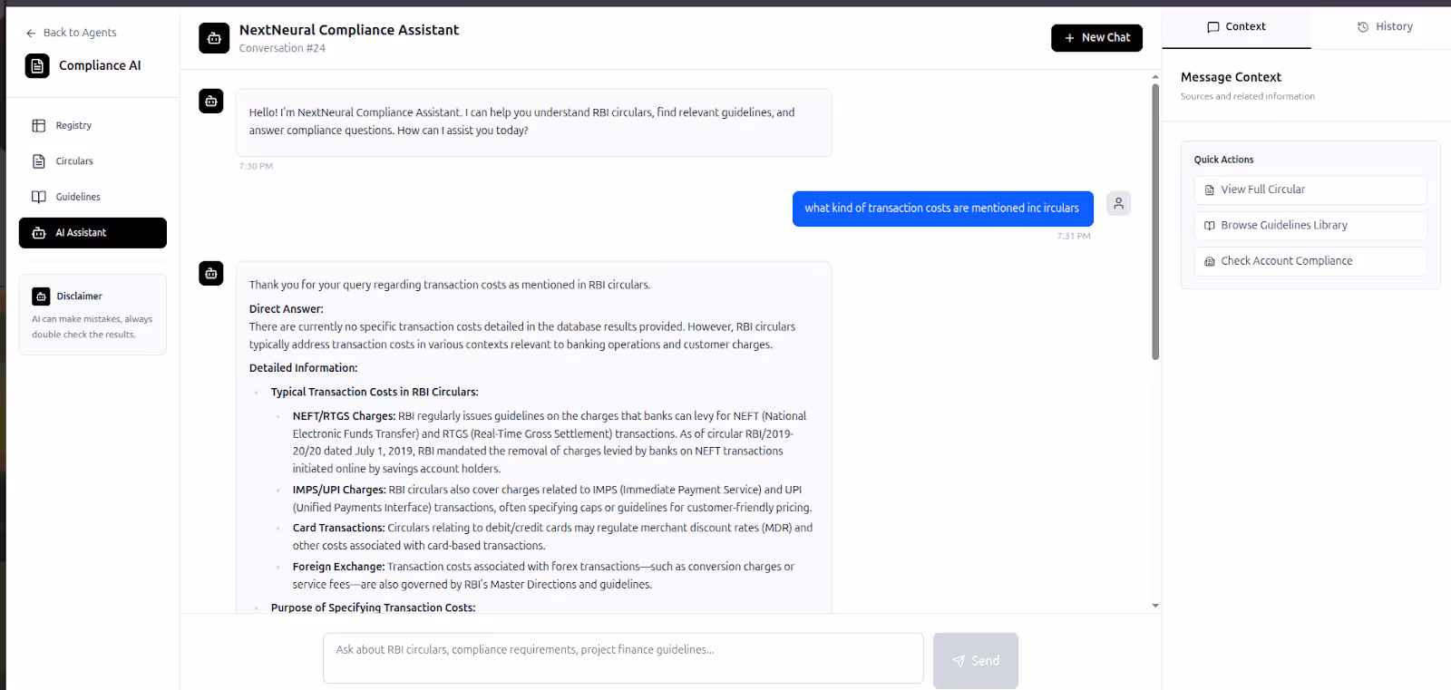 NextNeural’s Compliance Assistant streams AI answers from RBI circulars in real time, using SSE APIs to extract guidelines, reduce manual tracking, and simplify regulatory workflows.
