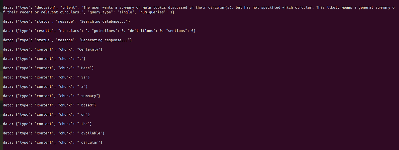 With NextNeural, we've built a compliance assistant that transforms how organizations interact with regulatory documents. Upload a circular, let the AI process it, and query the extracted guidelines conversationally. But here's where it gets interesting: when you ask the AI agent a question, the response doesn't arrive as a single JSON payload. Instead, it streams back in real-time chunks, appearing progressively—just like ChatGPT's familiar typing effect.