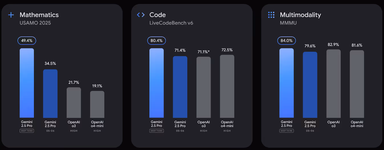 The 2.5 Pro model continues to lead in coding and long‑context benchmarks, topping leaderboards such as LMArena and WebDev Arena. It also features the experimental Deep Think mode for enhanced reasoning on complex math and coding tasks, delivering top scores on benchmarks like USAMO and LiveCodeBench. Both Pro and Flash variants now include native audio output for richer conversational experiences, improved security against prompt injection, and developer-focused tools like thought summaries and thinking-budget controls for cost-performance tuning. These features are available via Google AI Studio, Vertex AI, and the Gemini app.