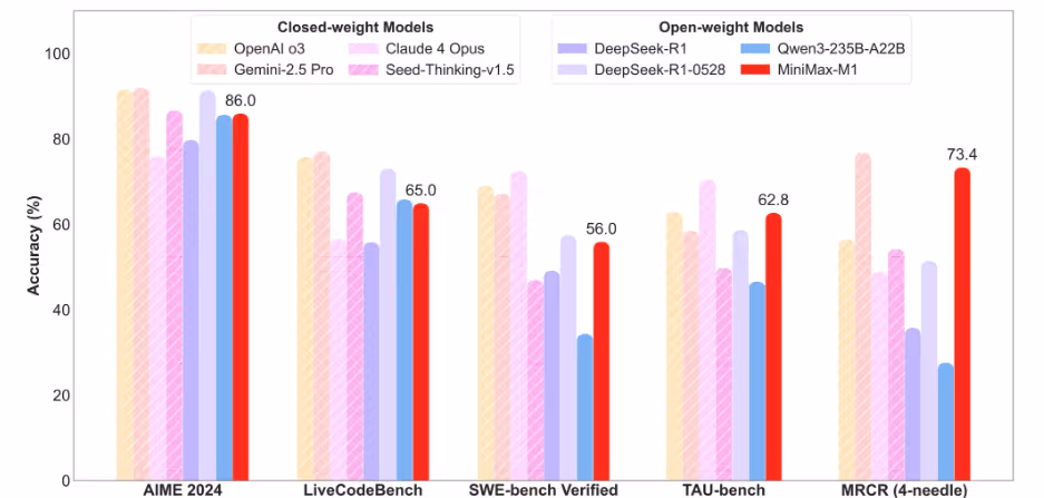 Benchmarks show MiniMax‑M1‑80K performs strongly across mathematics, coding, software engineering, long‑context reasoning, and tool-use tests, surpassing other open-weight models like DeepSeek‑R1 and Qwen3‑235B, and narrowing the gap with closed-source leaders. The model includes structured function calling and is offered via chatbot, API, and open deployment on platforms like Hugging Face and GitHub. It is optimized for deployment using backends like vLLM or Hugging Face Transformers, making it a strong, open-source option for enterprises and developers working with extremely long inputs or complex reasoning tasks.